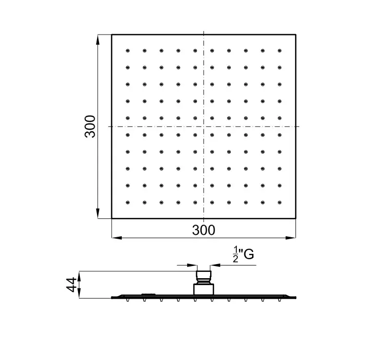 NOKEN SQUARE Верхний душ 30x30 см., с шаровым соединением и защитным клапаном, 12 л/мин, чёрный