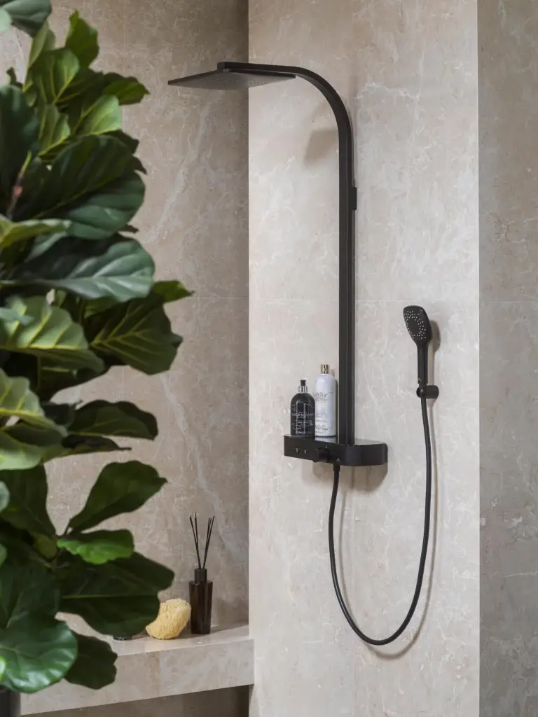 NOKEN TOUCH&FEEL ROUND Душевая стойка с термостатом, р/душ 11 и верхний душ 8,25 л/мин, чёрный