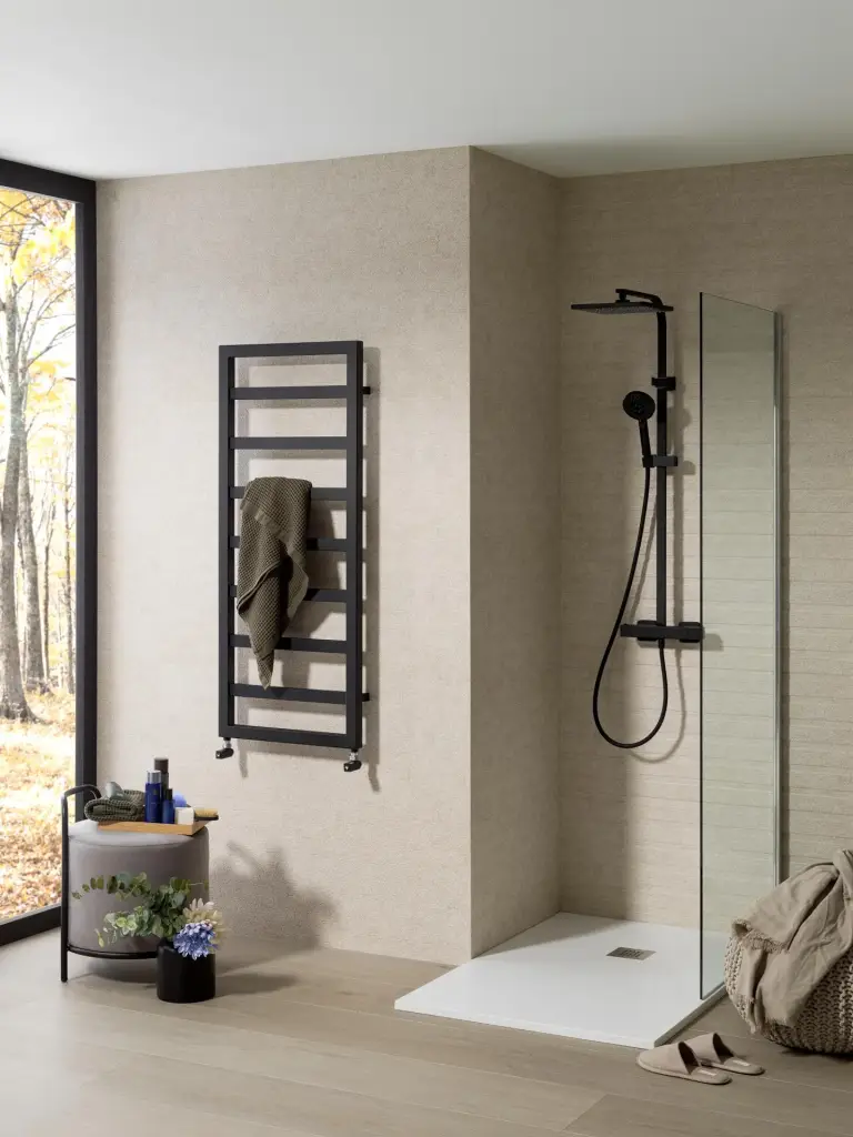NOKEN TEC SQUARE THERMOSTATIC Душевая стойка термостатическая, лейка 250x250 мм, черный матовый