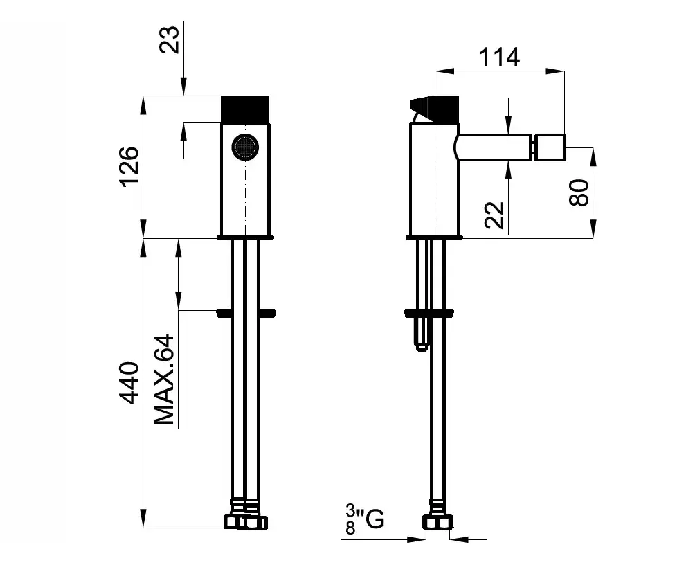 NOKEN TONO Однорычажный смеситель для биде, ребристая ручка, без ДК, 5.68 л/мин, титан