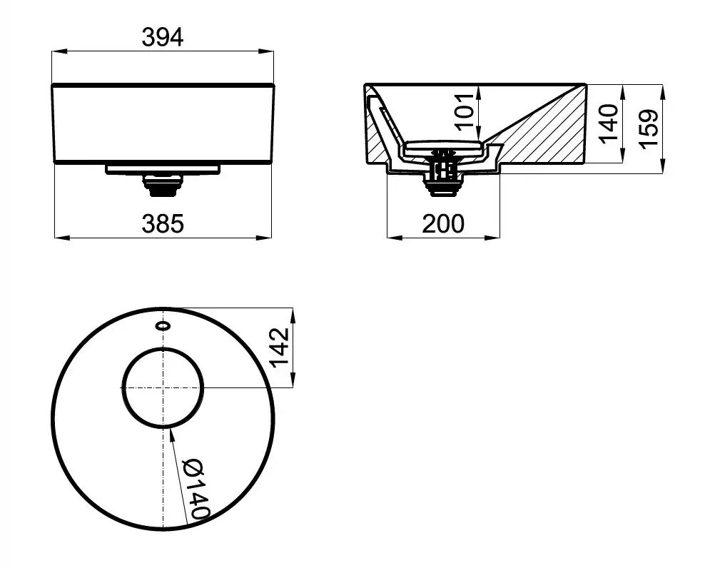 NOKEN TONO Раковина накладная 40 см, с переливом и керамическим ДК, чёрный