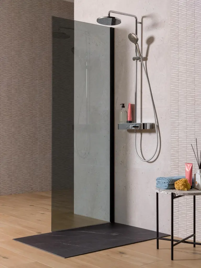 NOKEN TOUCH&FEEL ROUND Душевая стойка с термостатом, р/душ 11 и верхний душ 8,25 л/мин, чёрный
