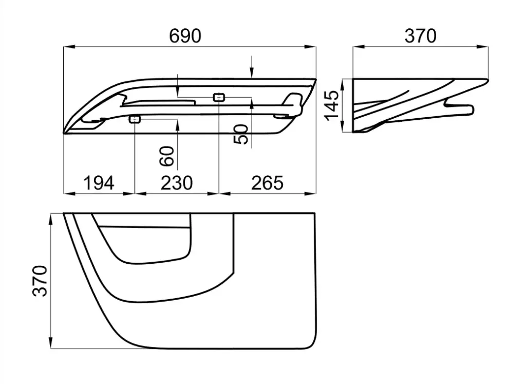 NOKEN VITAE Раковина подвесная 109 см с правым углублением и переливом, белый