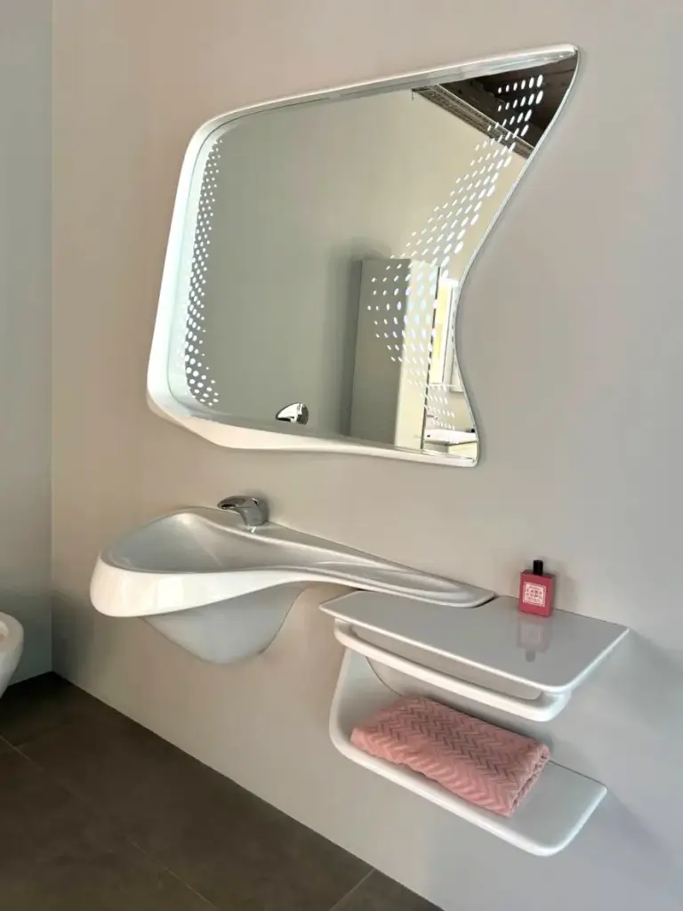 NOKEN VITAE Зеркало в раме, с подсветкой для раковины с правым углублением, зеркальное полотно/белый
