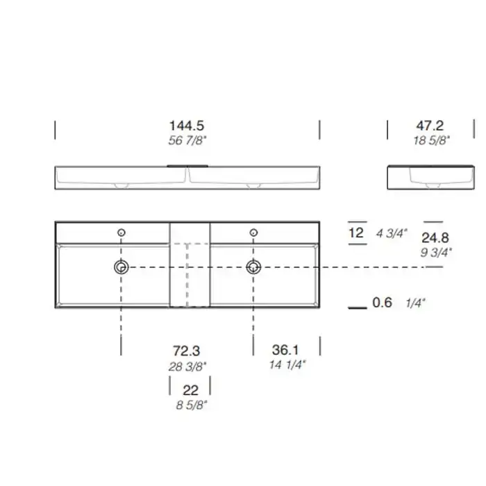 NOORTH milldue edition Раковина 144.5х47.2х12 см, с 1 отв., двойная, накладная, цвет: белый