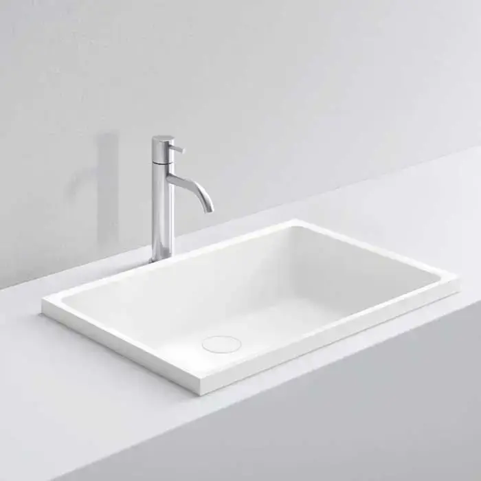 MILLDUE Раковина SKA встраиваемая сверху из CERAMILUX ,59х38х2,5 см, без отв для смесителя, цвет белый матовый