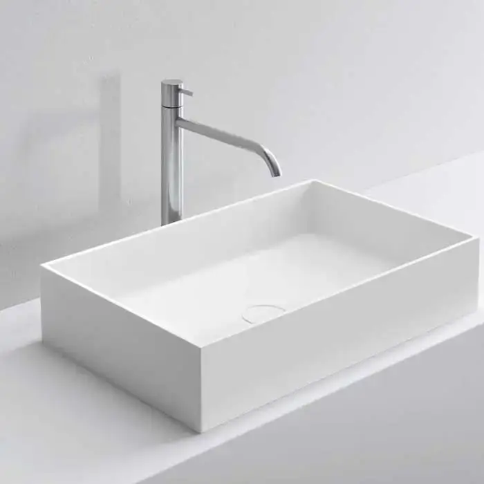 MILLDUE Раковина STEP 63_14 накладная из CRISTALPLANT ,63х38х14,2 см, без отв для смесителя, цвет белый матовый