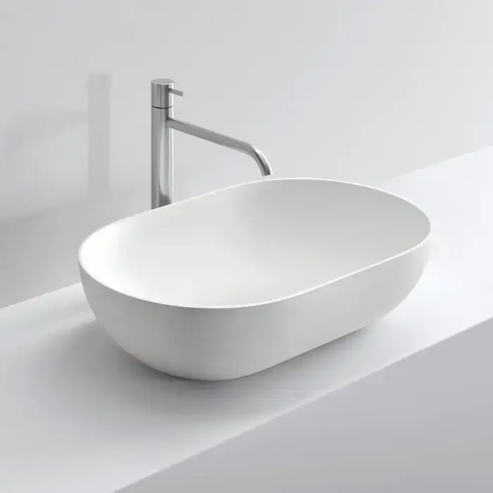 MILLDUE Раковина BLEND 63 накладная из CRISTALPLANT ,63х40х15 см, без отв для смесителя, цвет белый матовый