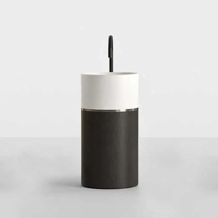 NOORTH milldue edition ROMA I Раковина напольная Ø450x880 мм., слив в пол, c донным клапан, корпус Rovere nero, вставка Platino, раковина Bianco opaco