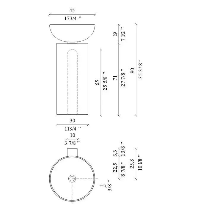 Noorth milldue edition SABA 45 Раковина напольная Ø45x90см, слив в стену, без отв., цвет: Caolino