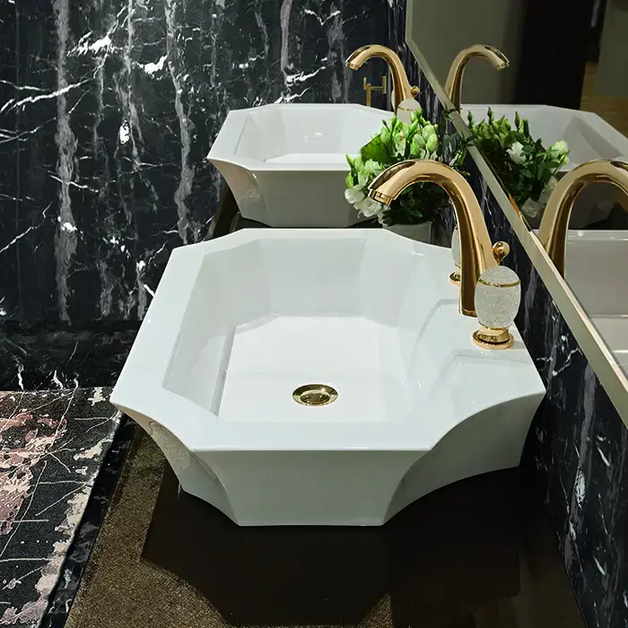 OASIS DAPHNE Столешница стеклянная 2100х530х36 мм., с 2 отверстиями для раковин и смесителей, отделка Saffiano vetro decorato