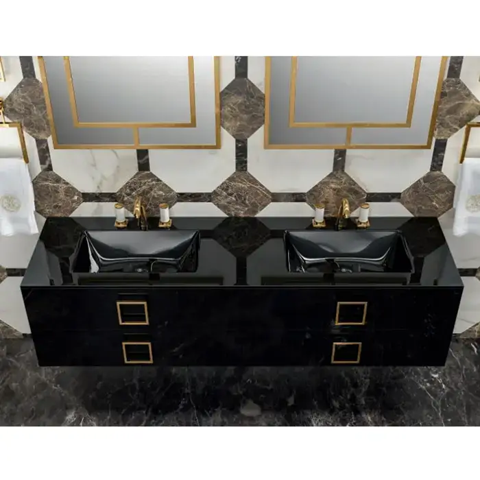 OASIS DAPHNE Тумба под раковину 850х525х500 мм., подвесная, 2 ящика, цвет Black глянцевый