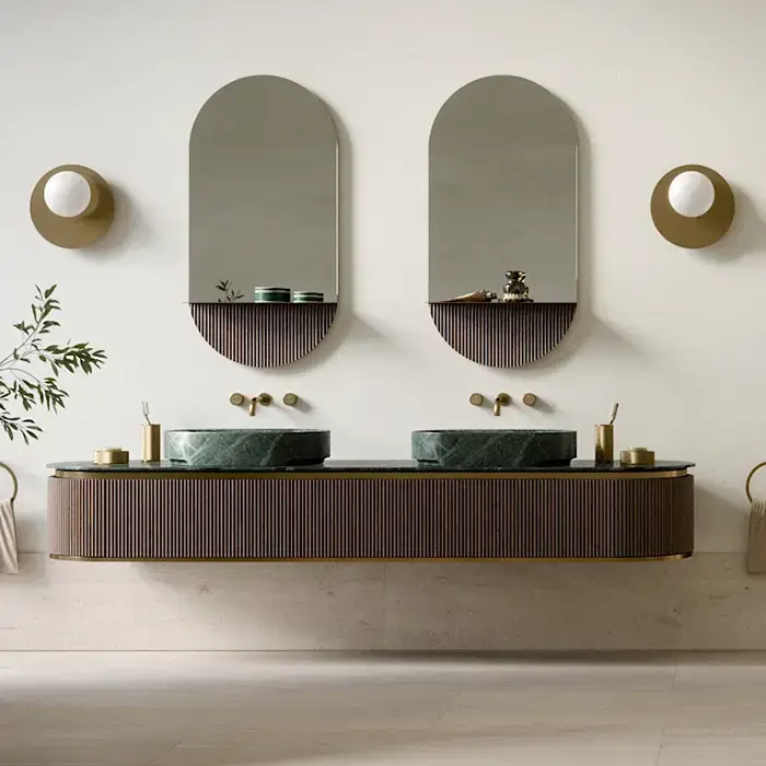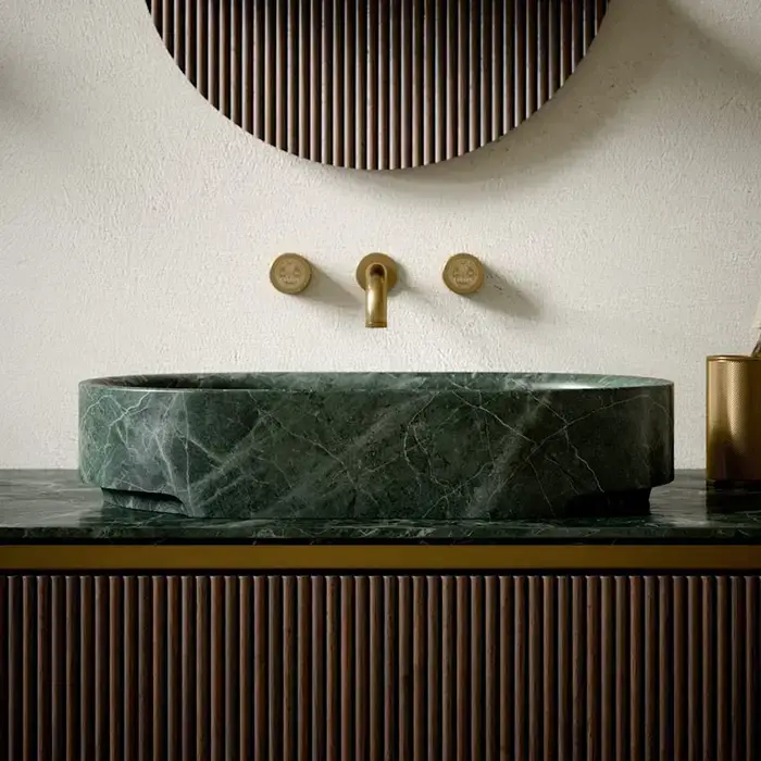 Oasis Naos / Топ мраморный загругленный с отверстием¶для 2 раковин L 236 D 56 H 2см цвет Verde Alp