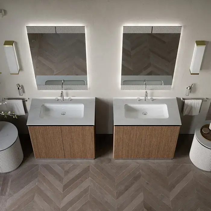 Oasis Naos Тумба для раковины напольная L 90 D 56 H 85см с 2 дверцами в комплекте с цоколем высотой 6 см, цвет хром/орех трубчатый