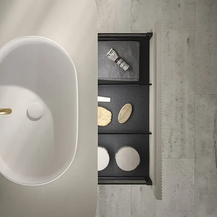 Oasis Naos Тумба подвесная под раковину 800х560хh450см, c 1м ящиком+1 вн. ящик, цвет: Corda elegance M52 фурнитура: латунь