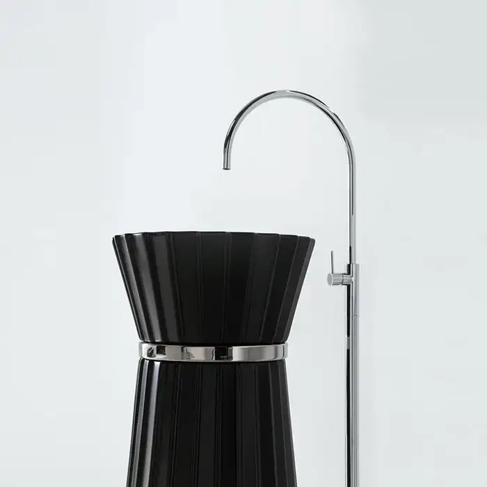 Oasis Plisse Раковина напольная Ø44х95см, без отв., без перелива, в комплекте с донным клапаном, цвет: черный/хром