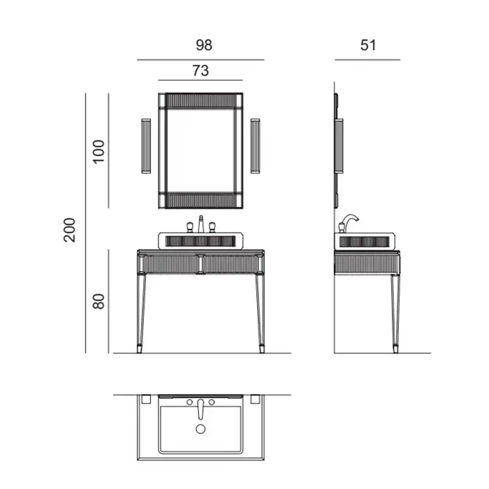 OASIS RIALTO Консоль под раковину 980х510х800 мм., напольная, 1 ящик, столешница, фурнитура хром, цвет Black глянцевый