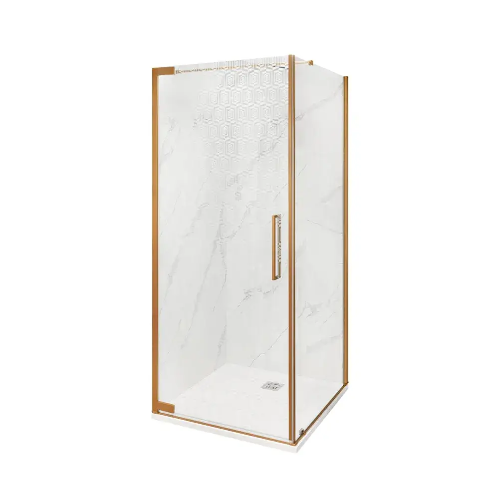 Ограждение в нишу Vismara Vetro Flare F FA 04 340 890 2000 S + F FF 04 340 890 2000 D стекло прозрачное/c декором P70, профиль matt copper