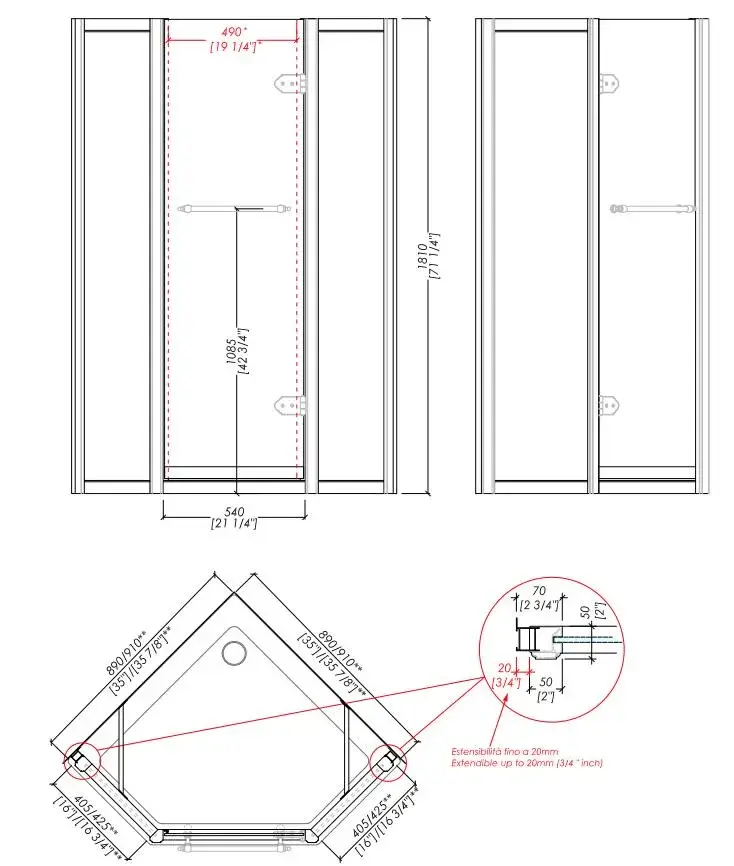 Ограждение в угол Devon&Devon SAVOY J CQJ90CDOT.SX+CQDEC2*4+CQDEC3*4+CQPRO1*4 профиль PRO1-светлое золото+DEC2+DEC3, стекло прозрачное+2T+5T