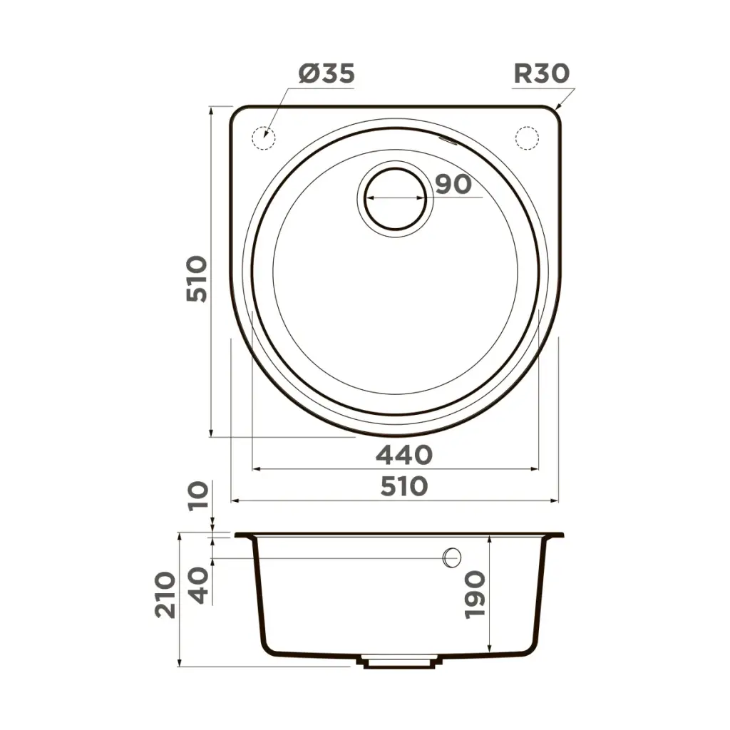 Omoikiri Akegata 51-GR Кухонная мойка Artgranit 51x51 см, цвет: leningrad grey 4993756