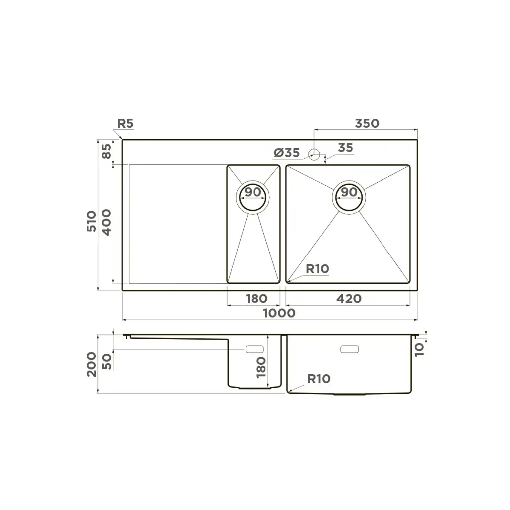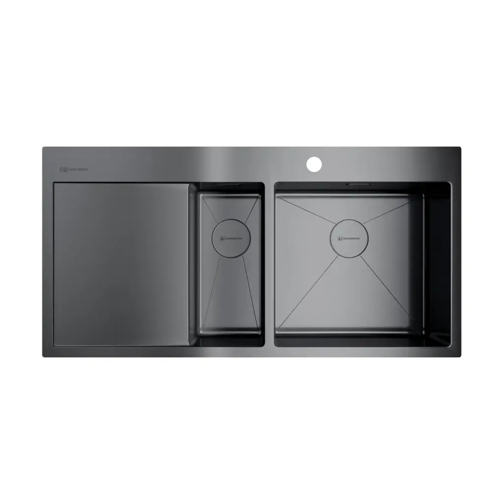 Omoikiri Akisame 100-2-R-GM Кухонная мойка нерж. сталь 100x51 см, цвет: вороненая сталь 4973104
