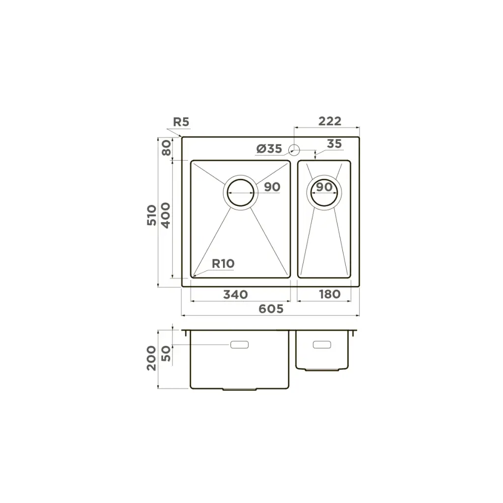 Omoikiri Akisame 60-2-L-IN Кухонная мойка нерж. сталь 60,5x51 см, цвет: нержавеющая сталь 4993775
