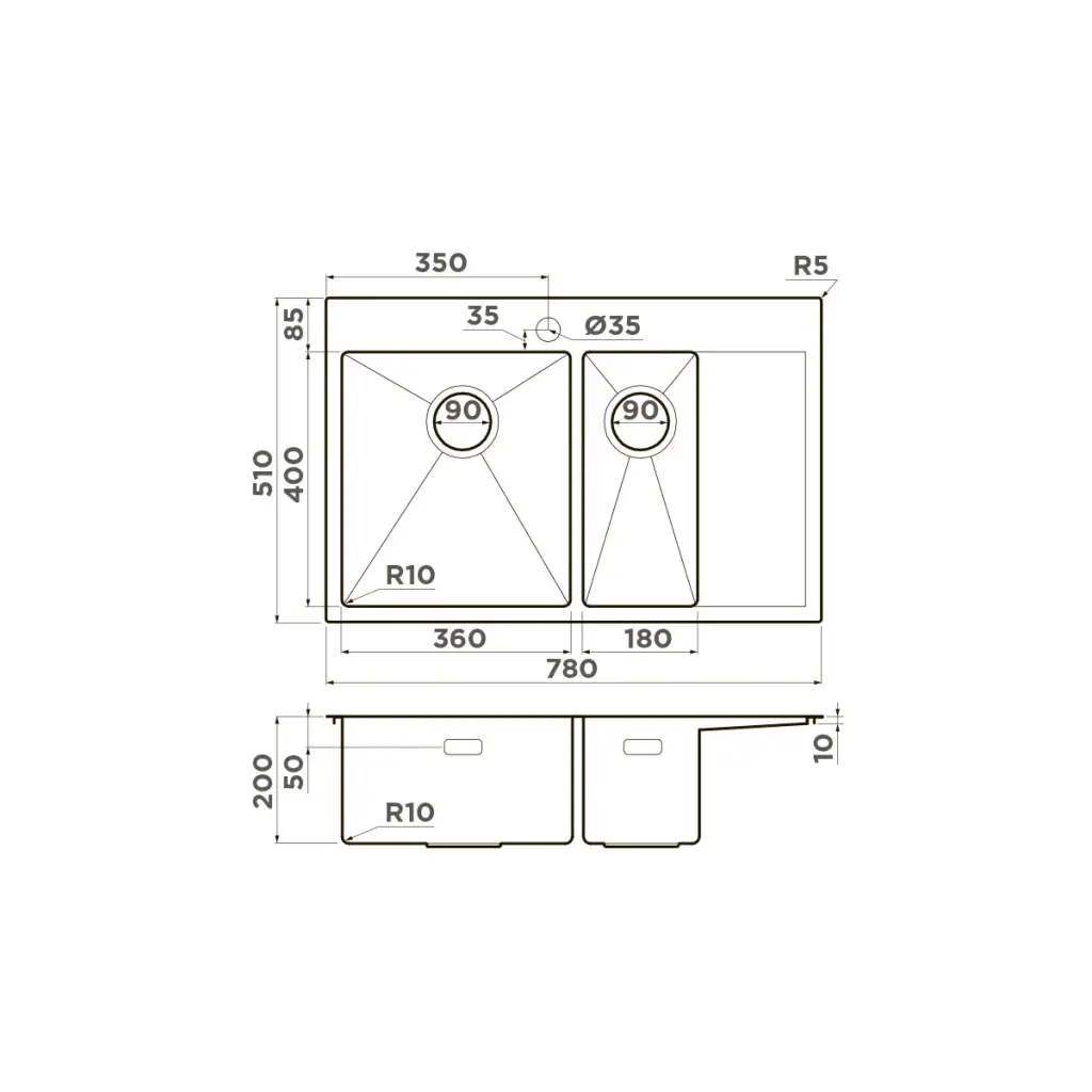 Omoikiri Akisame 86-R Side-IN Кухонная мойка нерж. сталь 86x51 см, цвет: нержавеющая сталь 4997042