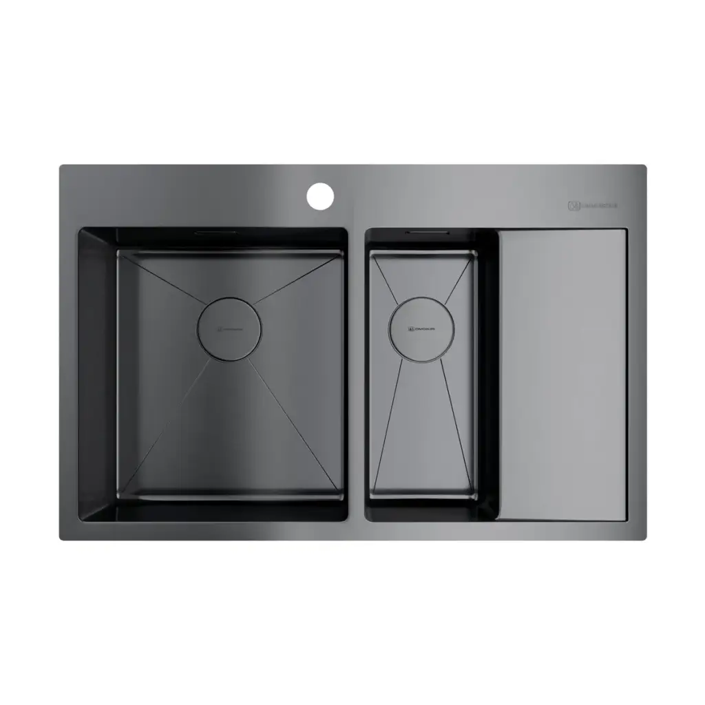 Omoikiri Akisame 78-2-L-GM Кухонная мойка нерж. сталь 78x51 см, цвет: вороненая сталь 4973101