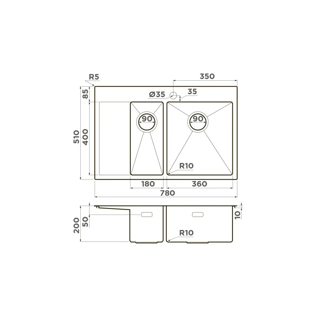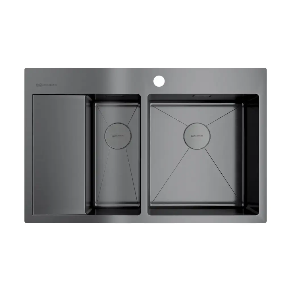 Omoikiri Akisame 78-2-R-GM Кухонная мойка нерж. сталь 78x51 см, цвет: вороненая сталь 4973102
