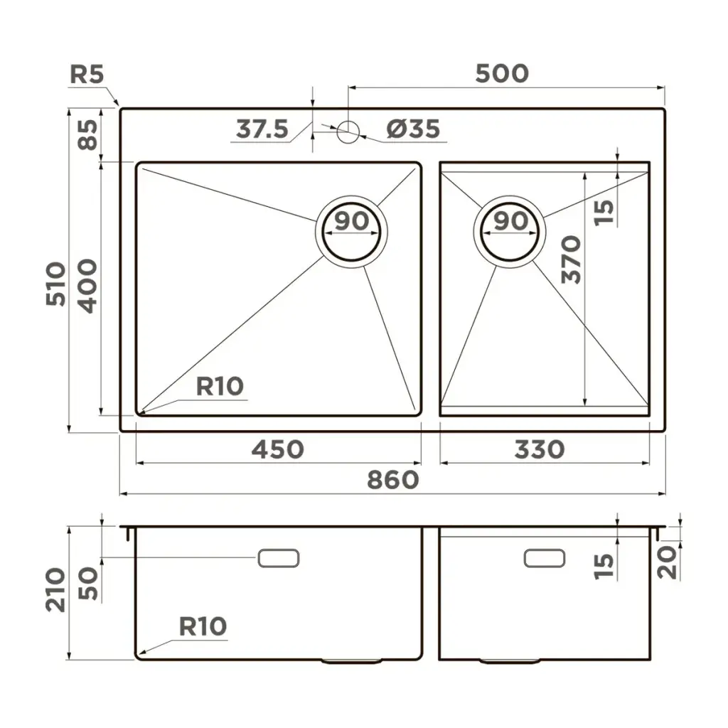 Omoikiri Akisame 86-R Side-IN Кухонная мойка нерж. сталь 86x51 см, цвет: нержавеющая сталь 4997042