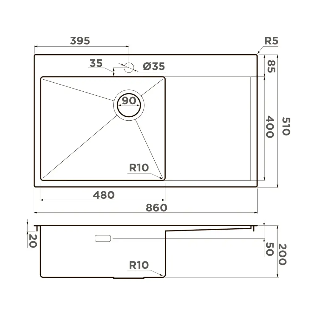 Omoikiri Akisame 86-L Side-IN Кухонная мойка нерж. сталь 86x51 см, цвет: нержавеющая сталь 4997031