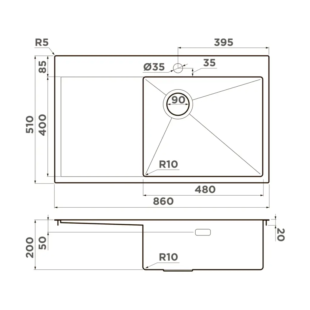 Omoikiri Akisame 86-R Side-IN Кухонная мойка нерж. сталь 86x51 см, цвет: нержавеющая сталь 4997042