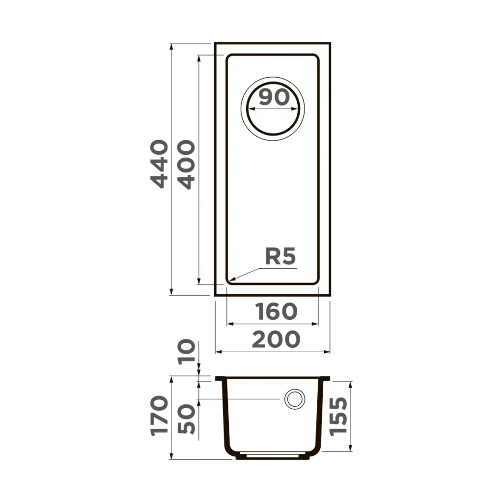 Omoikiri Bosen 20-U-BL Кухонная мойка Tetogranit 20x44 см, цвет: черный 4993153