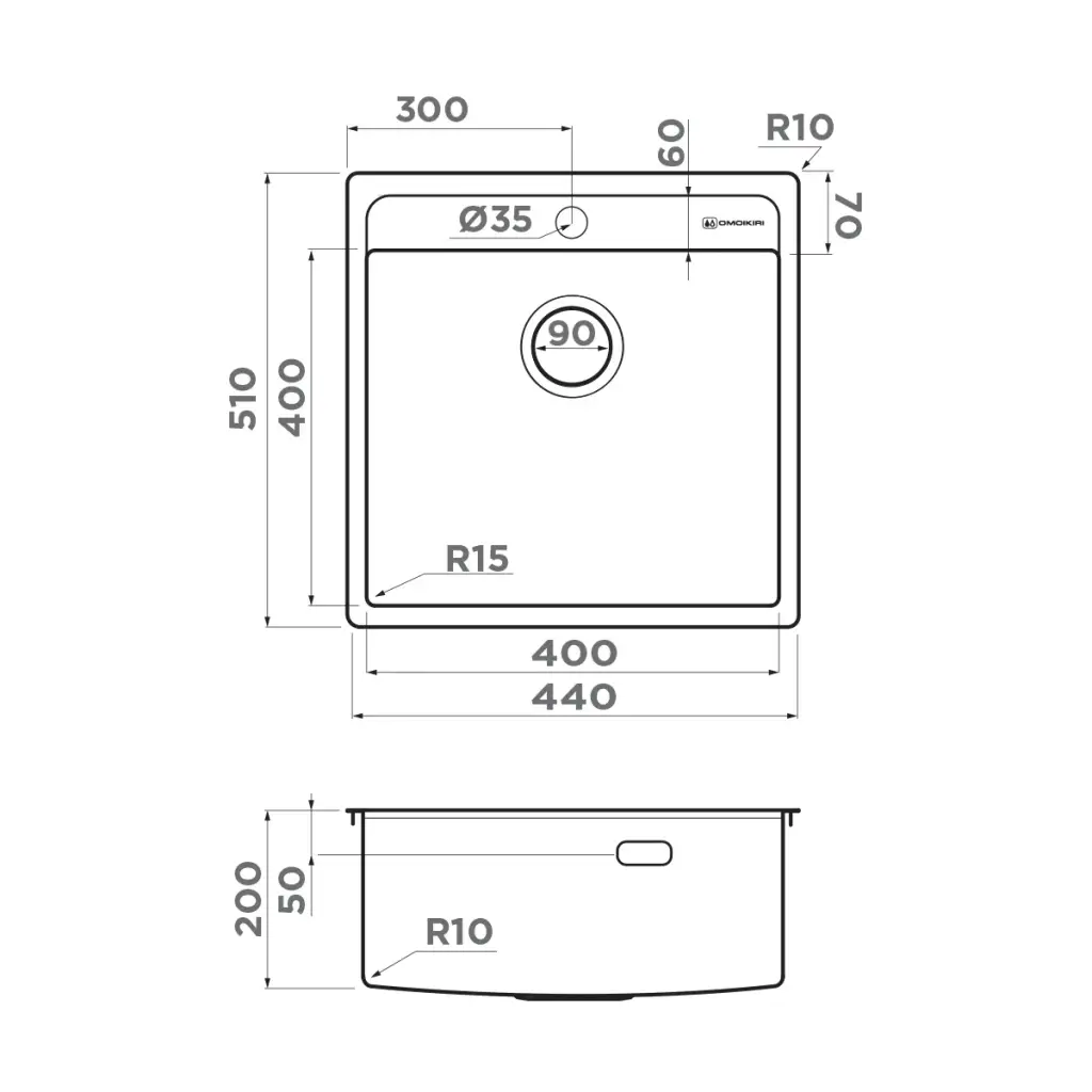 Omoikiri Daisen 44-IN Кухонная мойка нерж. сталь 44x51 см, цвет: нержавеющая сталь 4993179