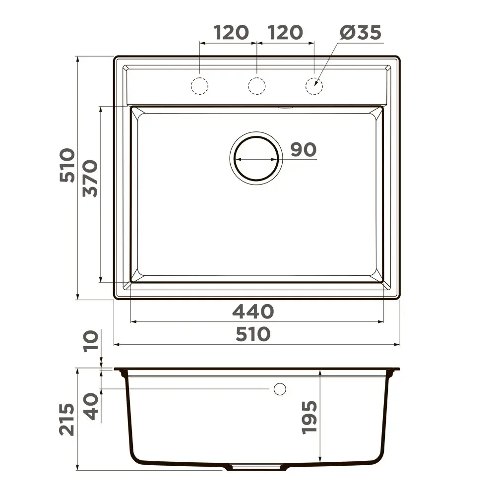 Omoikiri Daisen 51-BL Кухонная мойка из Artgranit 51x51 см, цвет: черный 4997303