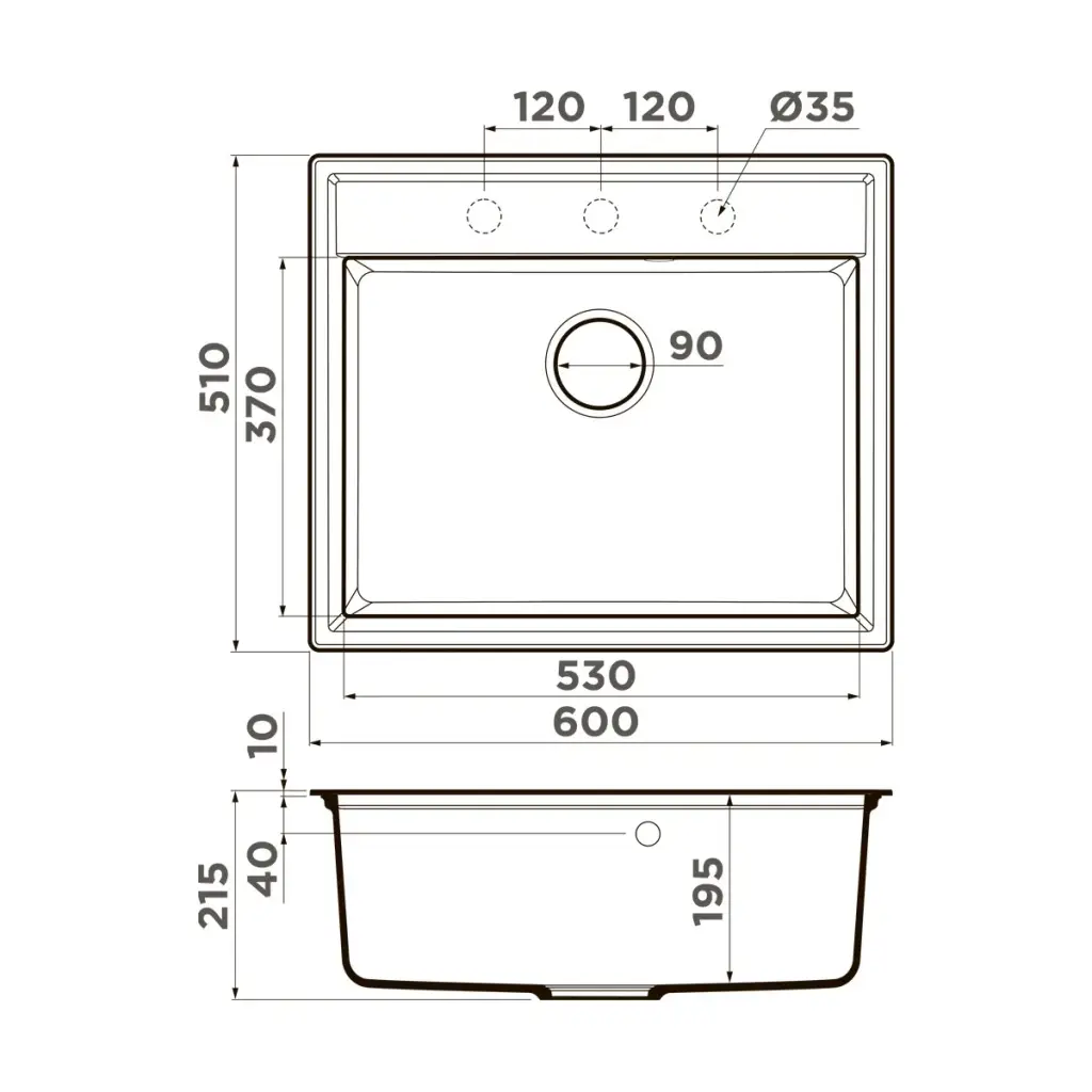 Omoikiri Daisen 65T BL Кухонная мойка из Tetogranit 65x23 см, крыло справа, цвет: черный 4993519