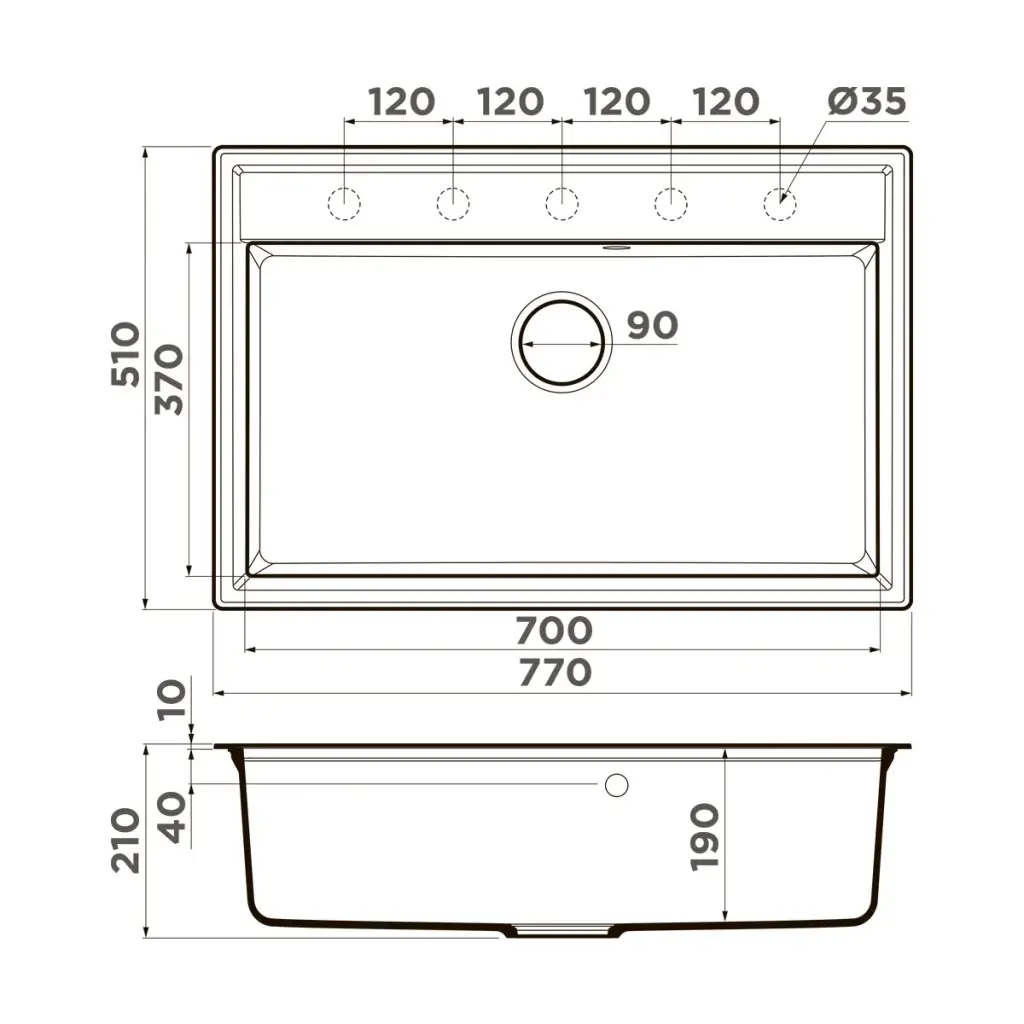 Толщина материала мойки, мм