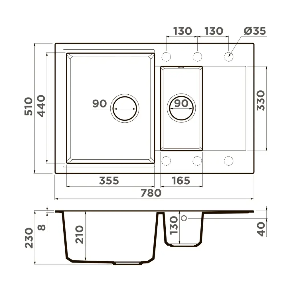 Omoikiri Daisen 65T DC Кухонная мойка из Tetogranit 65x23 см, крыло справа, цвет: темный шоколад 4993518
