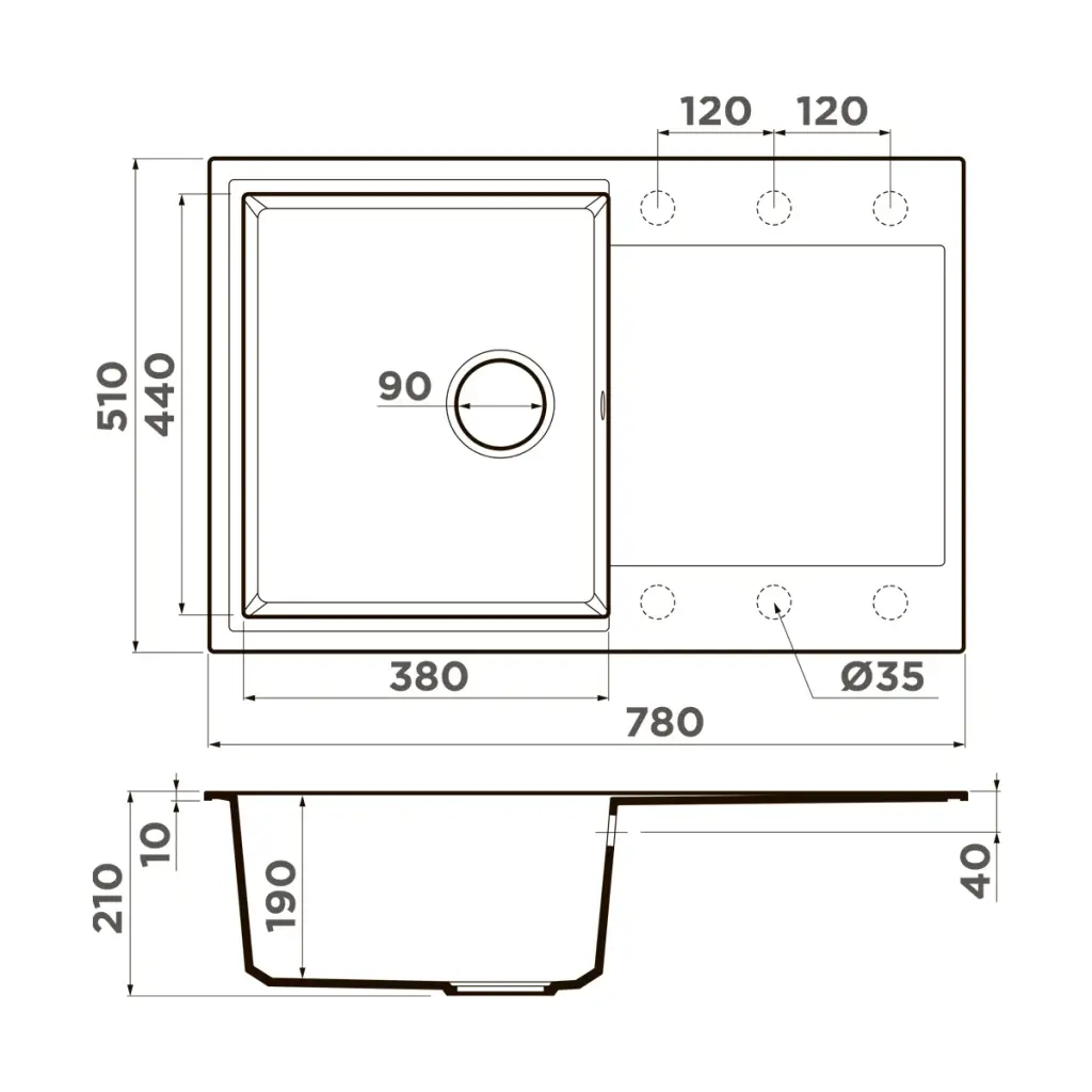 Omoikiri Daisen 78-GR Кухонная мойка Artgranit 78x51 см, цвет: leningrad grey 4993325