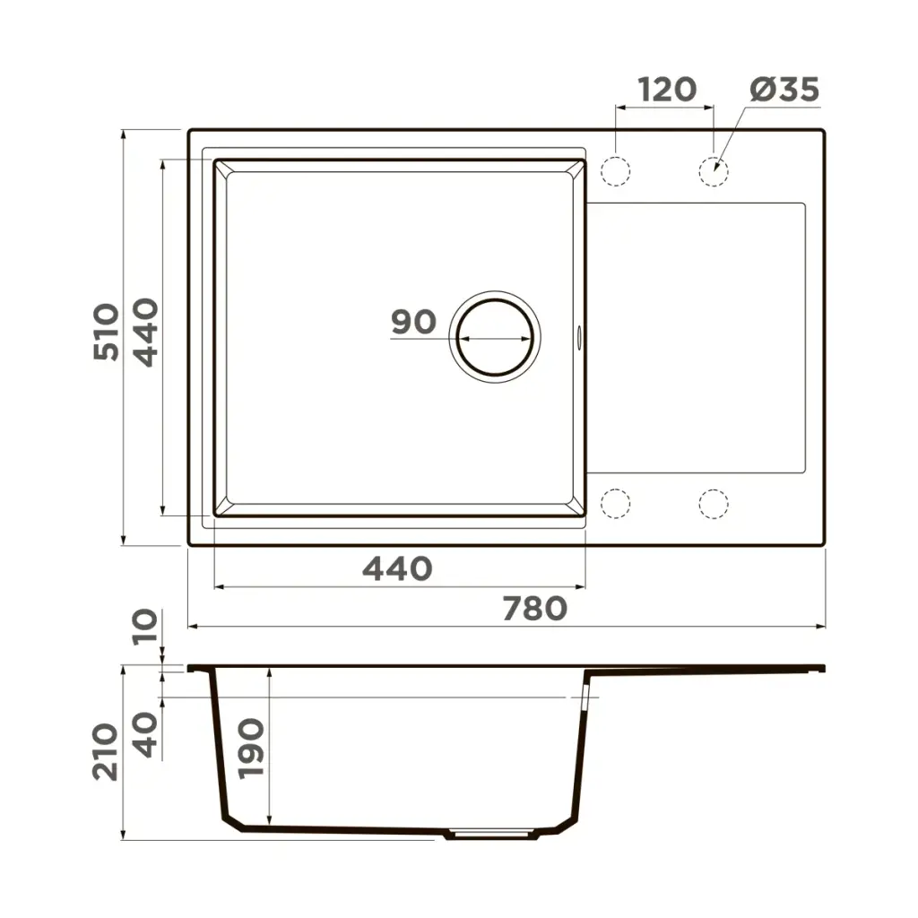 Omoikiri Daisen 65T DC Кухонная мойка из Tetogranit 65x23 см, крыло справа, цвет: темный шоколад 4993518