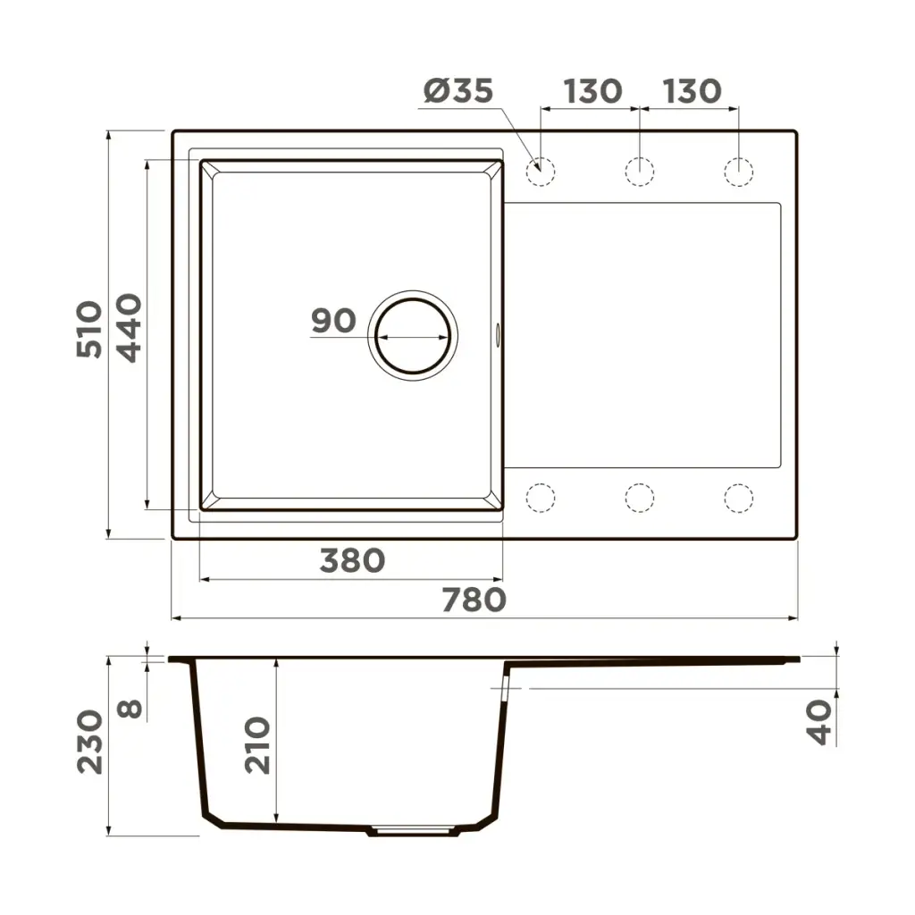 Omoikiri Daisen 65T DC Кухонная мойка из Tetogranit 65x23 см, крыло справа, цвет: темный шоколад 4993518