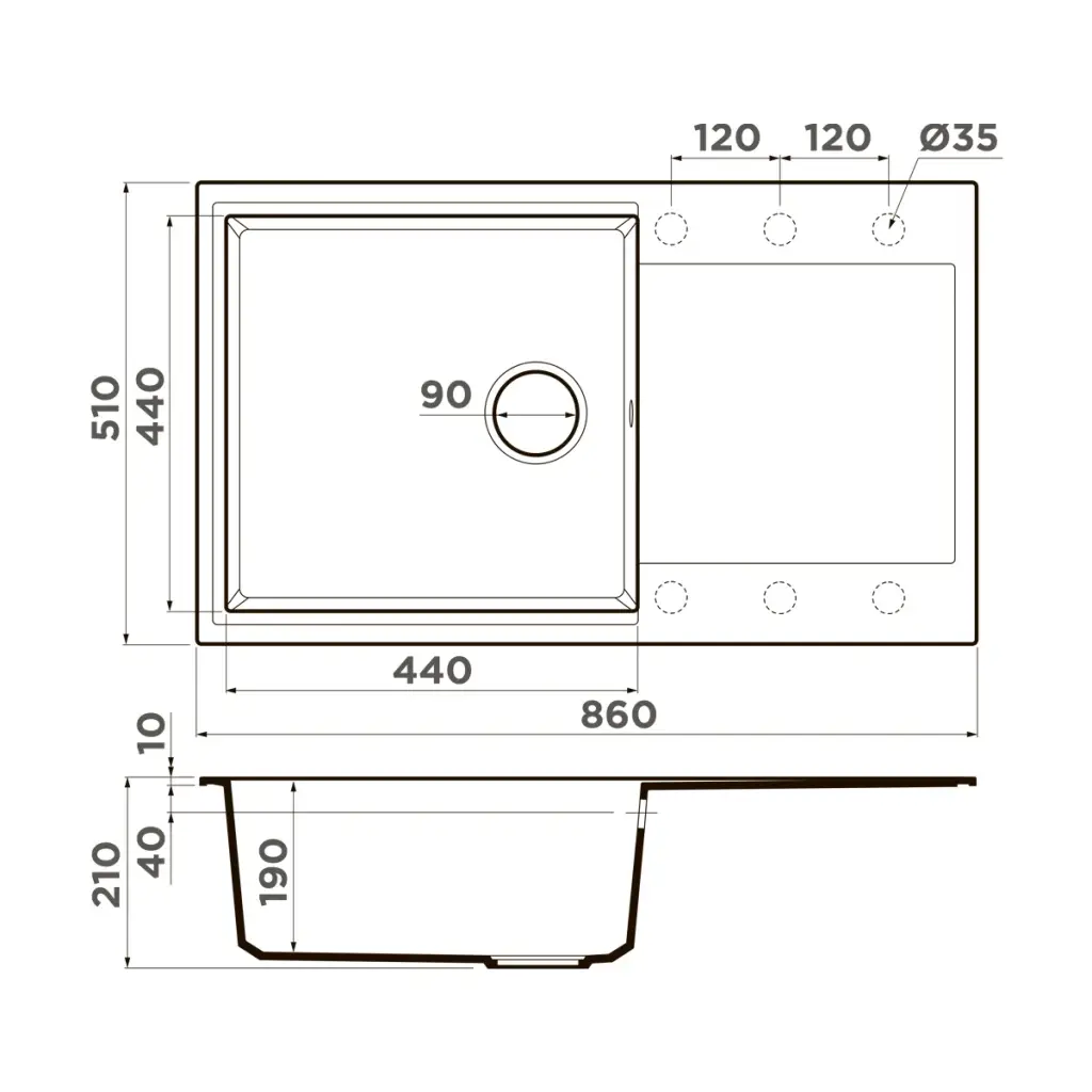 Omoikiri Daisen 65T DC Кухонная мойка из Tetogranit 65x23 см, крыло справа, цвет: темный шоколад 4993518