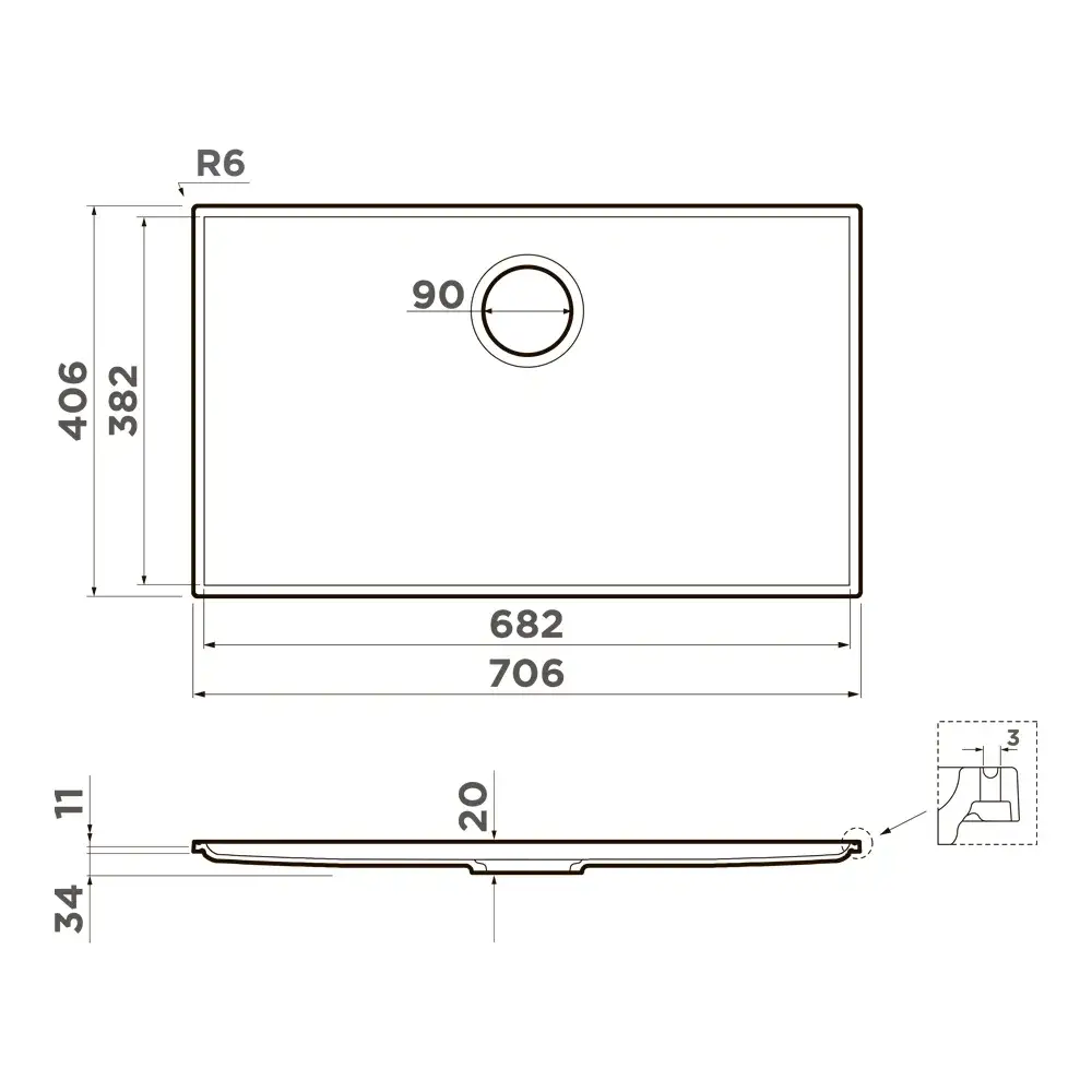 Omoikiri Kiten 70-INT-GB Кухонная мойка из Artceramic 70.6x40.6 см, цвет: графит 4997478