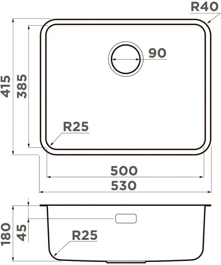 Omoikiri Кухонная мойка 53x41,5 см, из нержавеющей стали, с переливом, цвет: графит 4997419