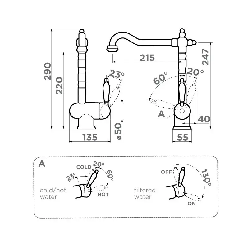 Omoikiri Kyoto 2 Plus-SI Смеситель для кухни с возм. подкл. фильтр, цвет: античное серебро 4994352