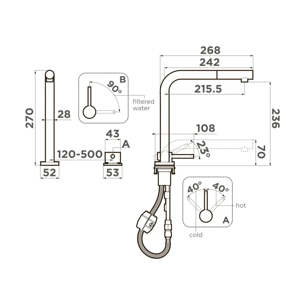 Omoikiri Nara 2 Plus-S-GB Смеситель для кухни с гибким изливом и возм. подкл. фильтр, графит 4994373