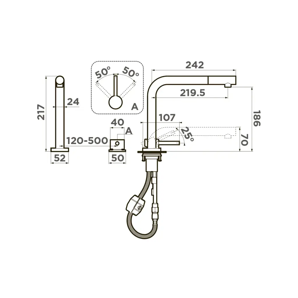 Omoikiri Nara-S-GB Смеситель для кухни с гибким изливом, цвет: графит 4994371