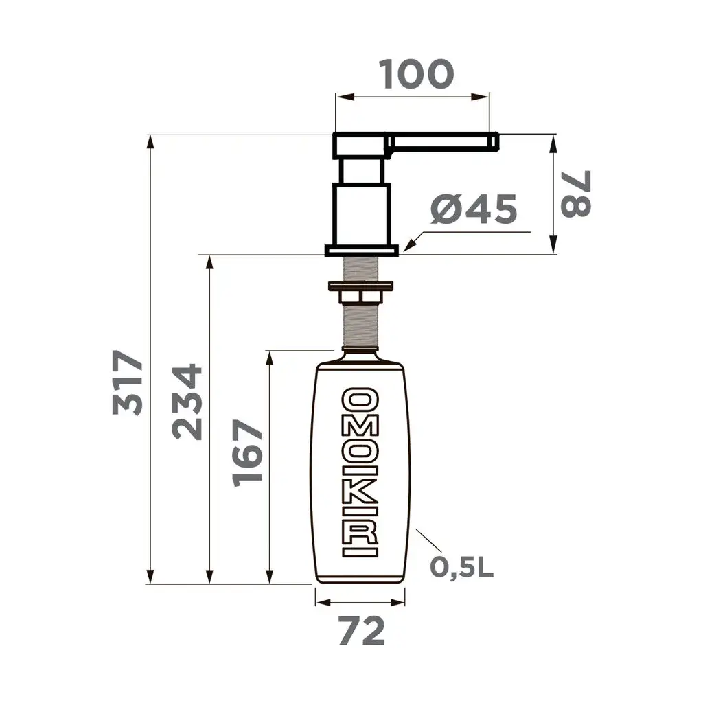 Omoikiri OM-05-BN Дозатор для кухни встраиваемый цвет: нержавеющая сталь 4995076