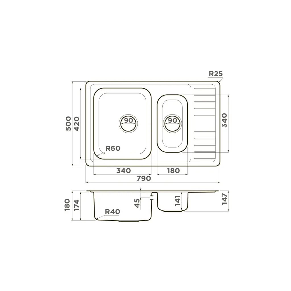 Omoikiri Sagami 79-2-IN Кухонная мойка нерж. сталь 79x50 см, цвет: нержавеющая сталь 4993733