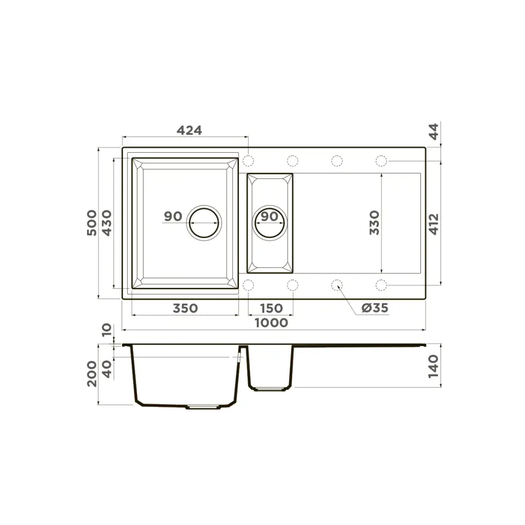 Omoikiri Sakaime 100-2 ES Кухонная мойка из Tetogranit, крыло справа, 100x20 см, цвет: espresso 4997219